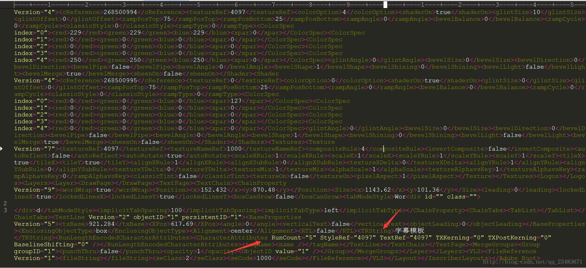 这里我右击打开字幕文件,找到存放字幕文本的标签TRString,这样更改里面的文本就相当于换了一个字幕文件?如果你这样做PR是不能正确识别的。还有个地方需要注意的就是更改TRString下文本的同时也要注意这个文本的长度是多少,因为CharacterAttributes这个标签下的属RunCount就是记录文本字符的长度的。但就找到并了解它们就花了我大半天,晕~~。知道了这两个标签的作用后,就可以通过程序来修改它了。