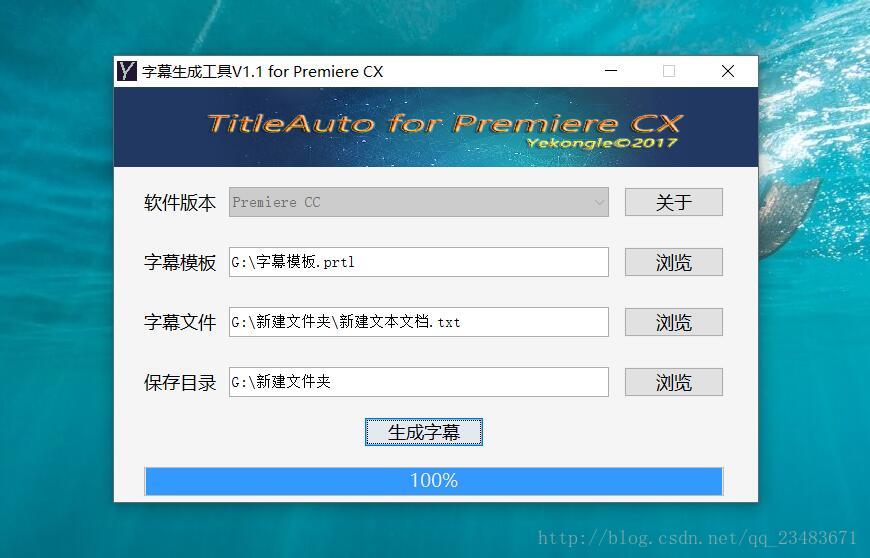 用法也很简单,就是选择字幕模板,字幕文件和保存路径就可以批量生成字幕了,字幕文件将保存在一个名为Titles的目录里,这样方便整个目录拷贝到PR中。值得注意的是,目前仅支持PR CC版本的字幕文件。还有就是要运行它前提是要有java运行环境。其它版本的PR,如cs,非常有空或者有兴致的时候再改下。