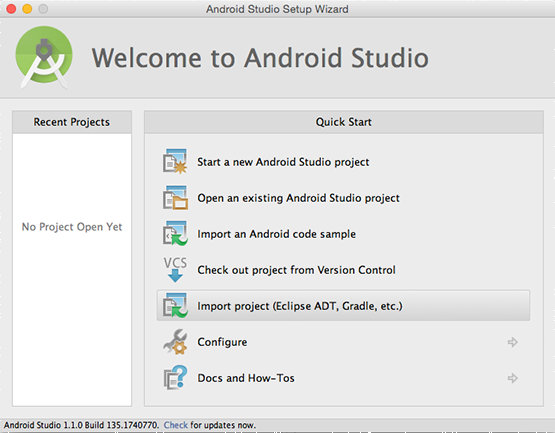 安装 Android Studio, 具体安装说明请查看 Android 开发网站。