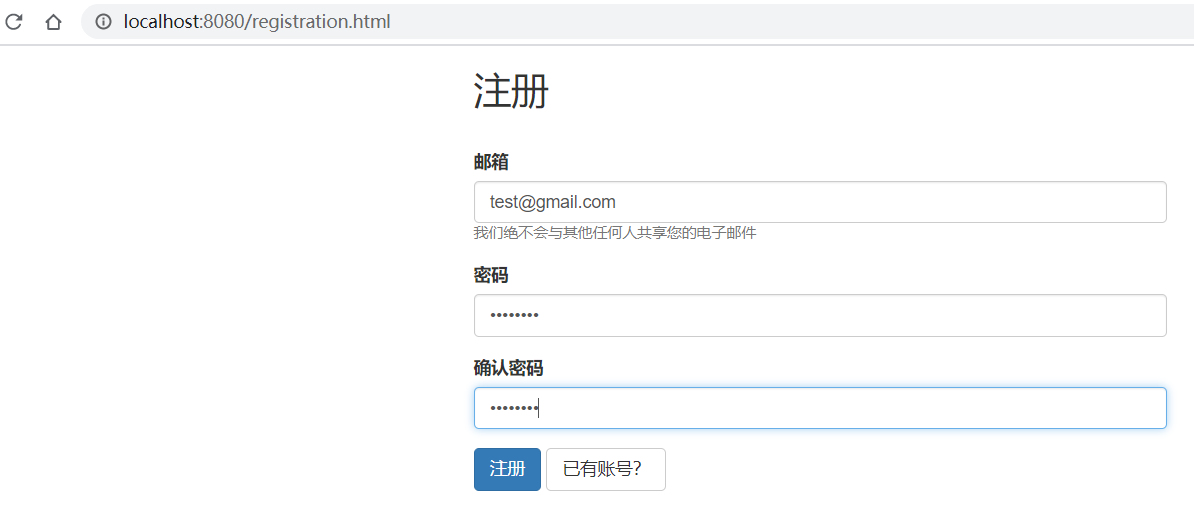 - 访问 http://localhost:8080,会自动跳到登录页面,先点击跳到注册页面