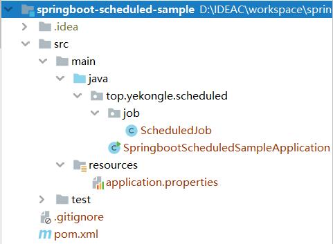 1 2 3 4 5 6 7 8 9 10 11 12 13 14 15 16 17 18 19 package top.yekongle.scheduled;import org.springframework.boot.SpringApplication;import org.springframework.boot.autoconfigure.SpringBootApplication;import org.springframework.scheduling.annotation.EnableScheduling;@SpringBootApplication @EnableScheduling public class SpringbootScheduledSampleApplication { public static void main (String[] args) { SpringApplication.run(SpringbootScheduledSampleApplication.class, args); } }